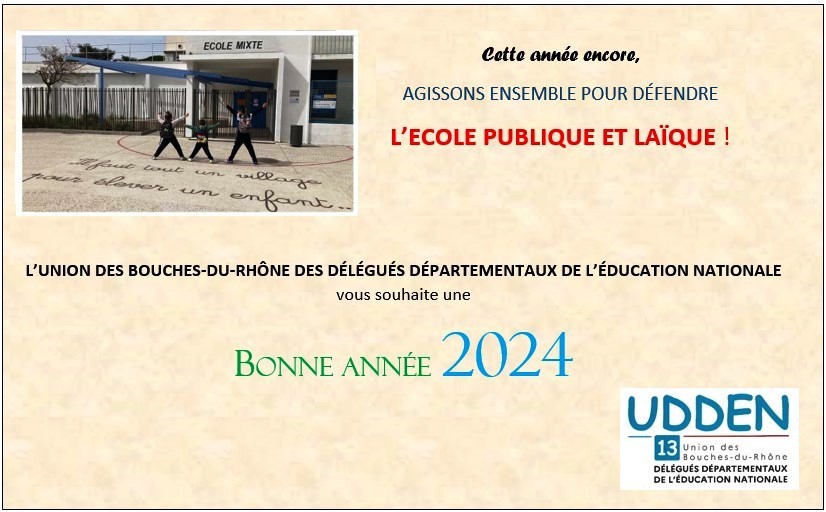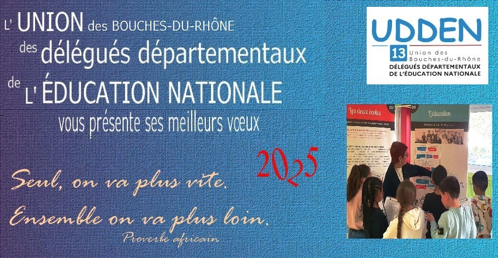 – L’Union des Bouches-du-Rhône des Délégués Départementaux de l’Education Nationale vous présente ses meilleurs vœux pour 2025.