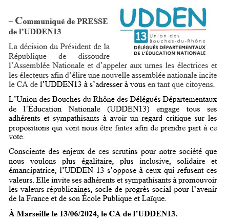 – La Lettre de rentrée aux adhérents de UDDEN13 : Suivre le lien