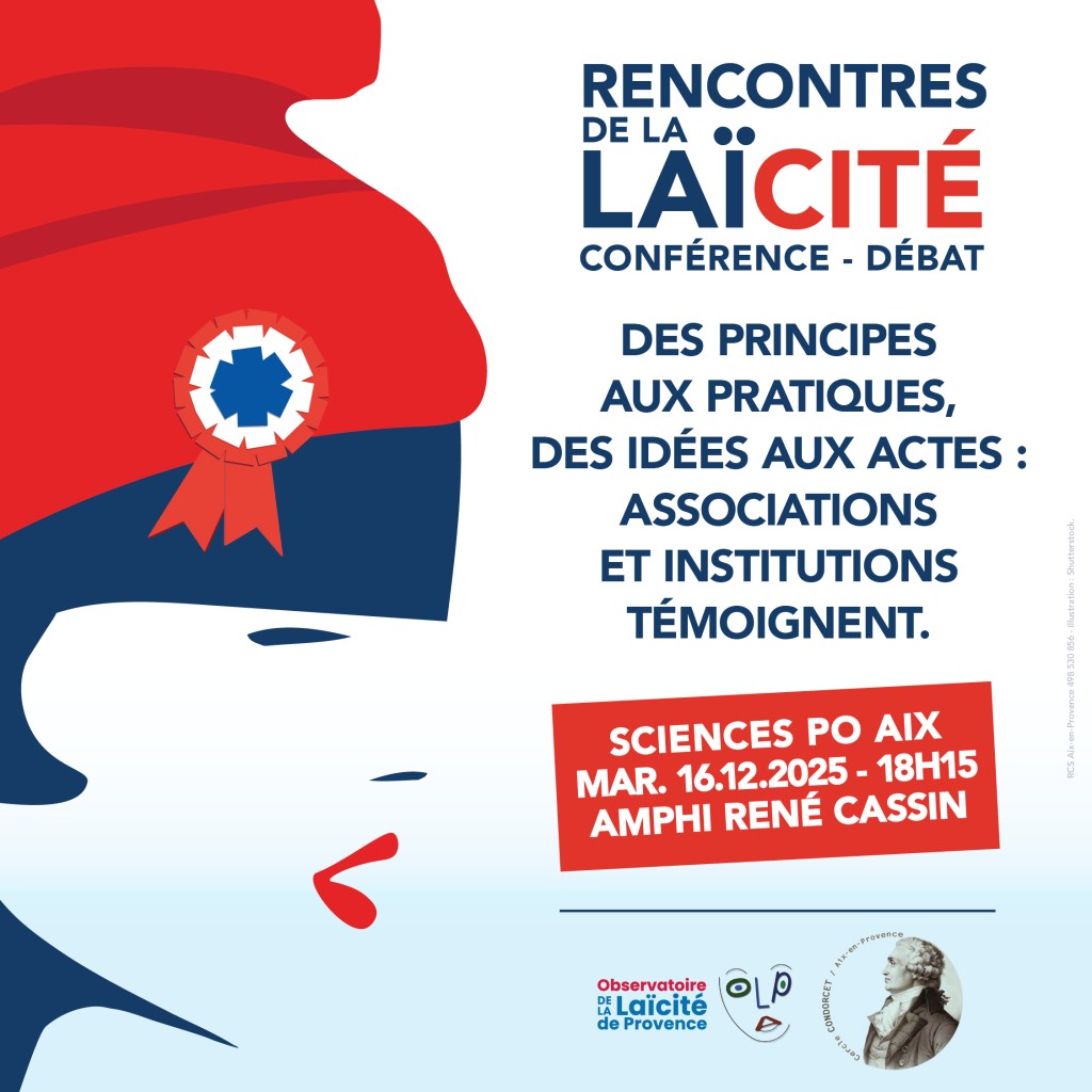 – L’OLPA (Observatoire de la Laïcité de Provence) et le Cercle Condorcet vous invitent à une conférence débat : Sciences Po Aix Mardi 16 décembre 2025 18h15 Amphi René Cassin.