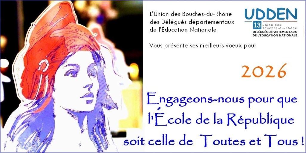 – L’Union des Bouches-du-Rhône des Délégués Départementaux de l’Education Nationale vous présente ses meilleurs vœux pour 2026.