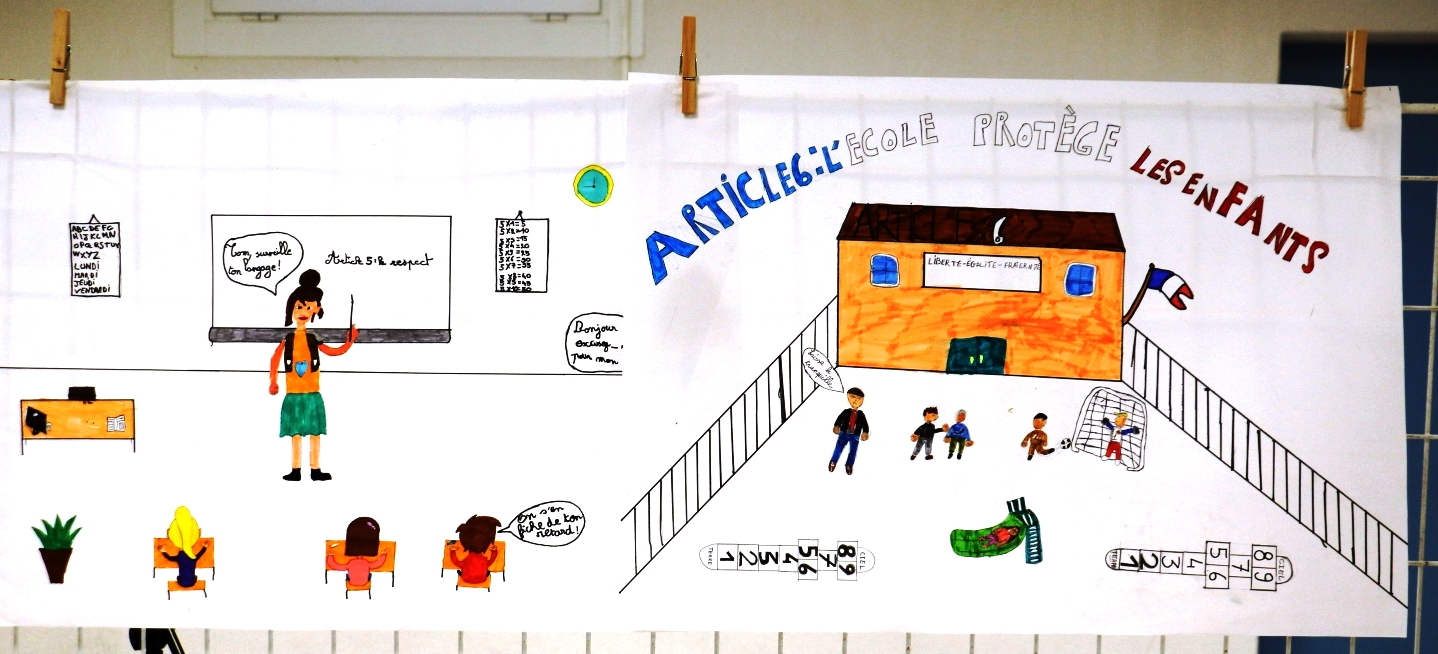 > Autres écoles : Accueil du Grand Tableau Laïcité et projet Timbres Laïcité.