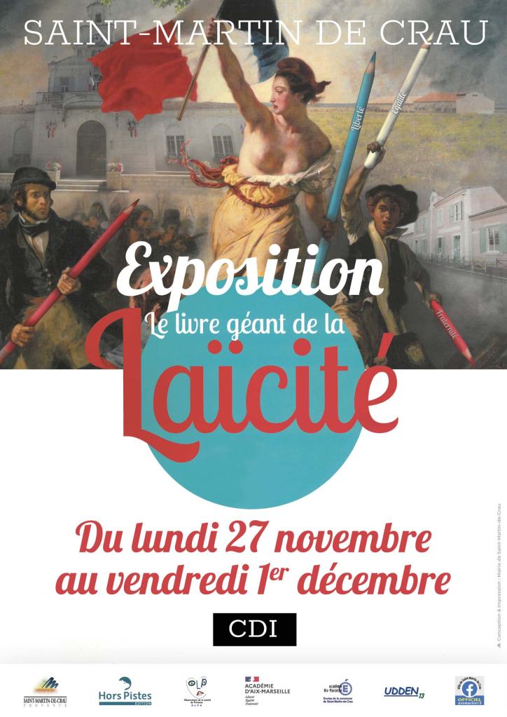 1. Exposition « Le Livre Géant de la laïcité » du 14 au 25 novembre au CDC, ouverte au public et visite planifiée des classes des CM2 des écoles de Saint Martin de Crau
