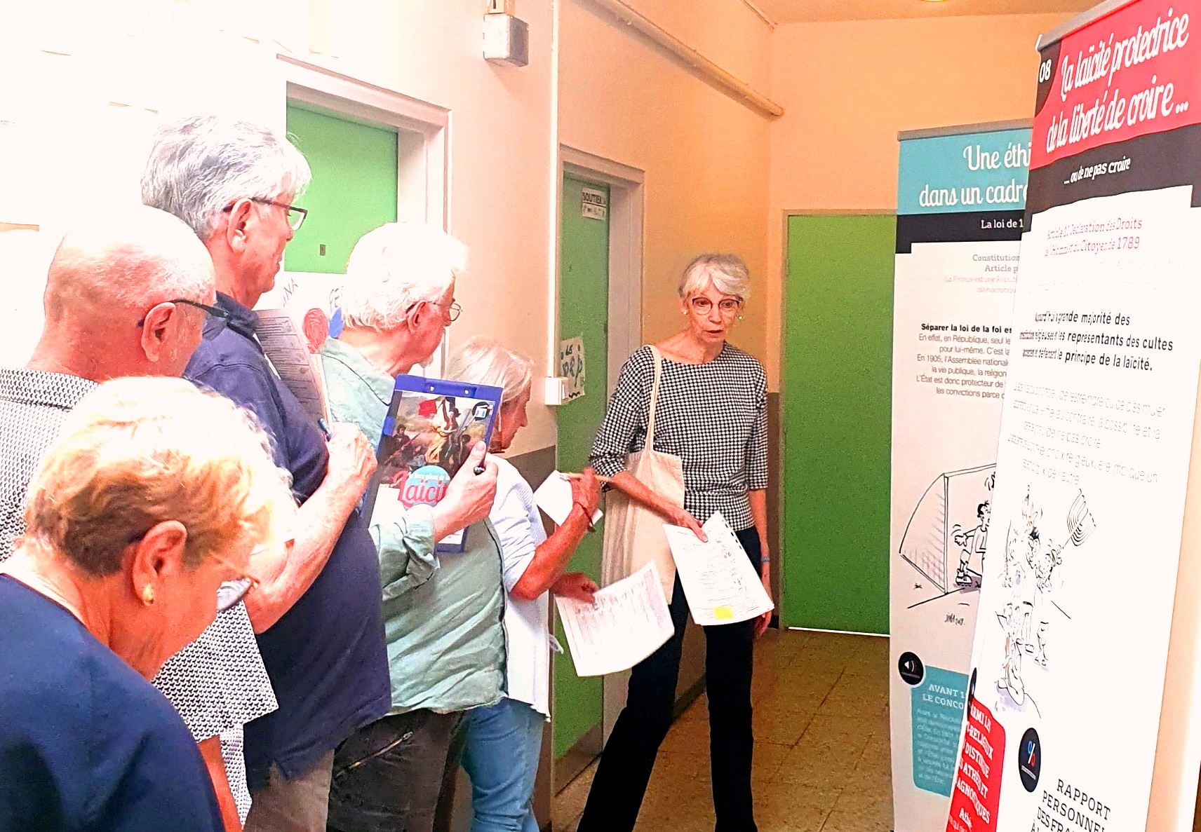 Ce samedi 23 septembre 2023 de 9h30 à midi 30, 12 DDEN se sont retrouvés au siège de notre association afin découvrir les outils pédagogiques qui accompagnent l’exposition du Livre Géant de la laïcité. Ces outils ont été mis au point par l’UDDEN13 en partenariat avec l’OLPA. Ils permettent aux collègues volontaires d’accompagner la présentation de cette exposition avec des élèves de CM2.