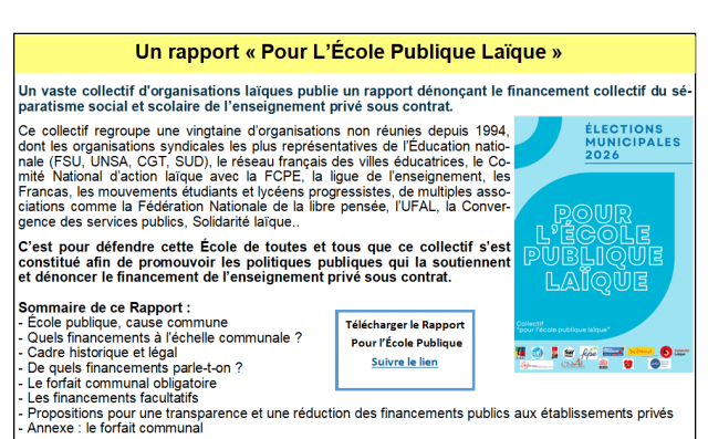 – Elections municipales 2026, « Pour l’Ecole Publique Laïque ».