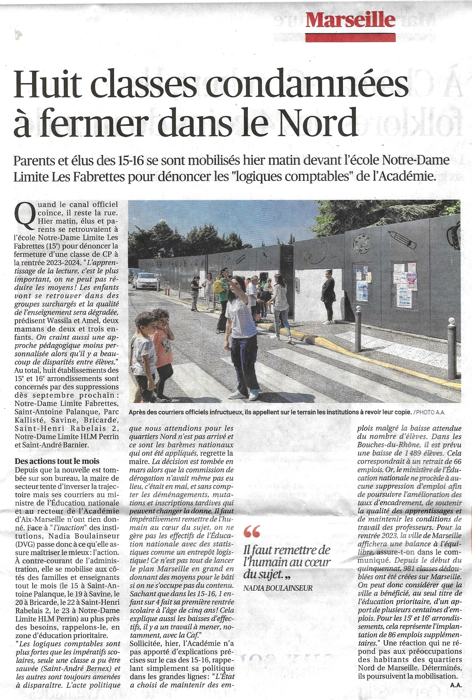– La Provence du samedi 25 mars 2023 : Une carte scolaire qui exaspère. Cliquer pour agrandir