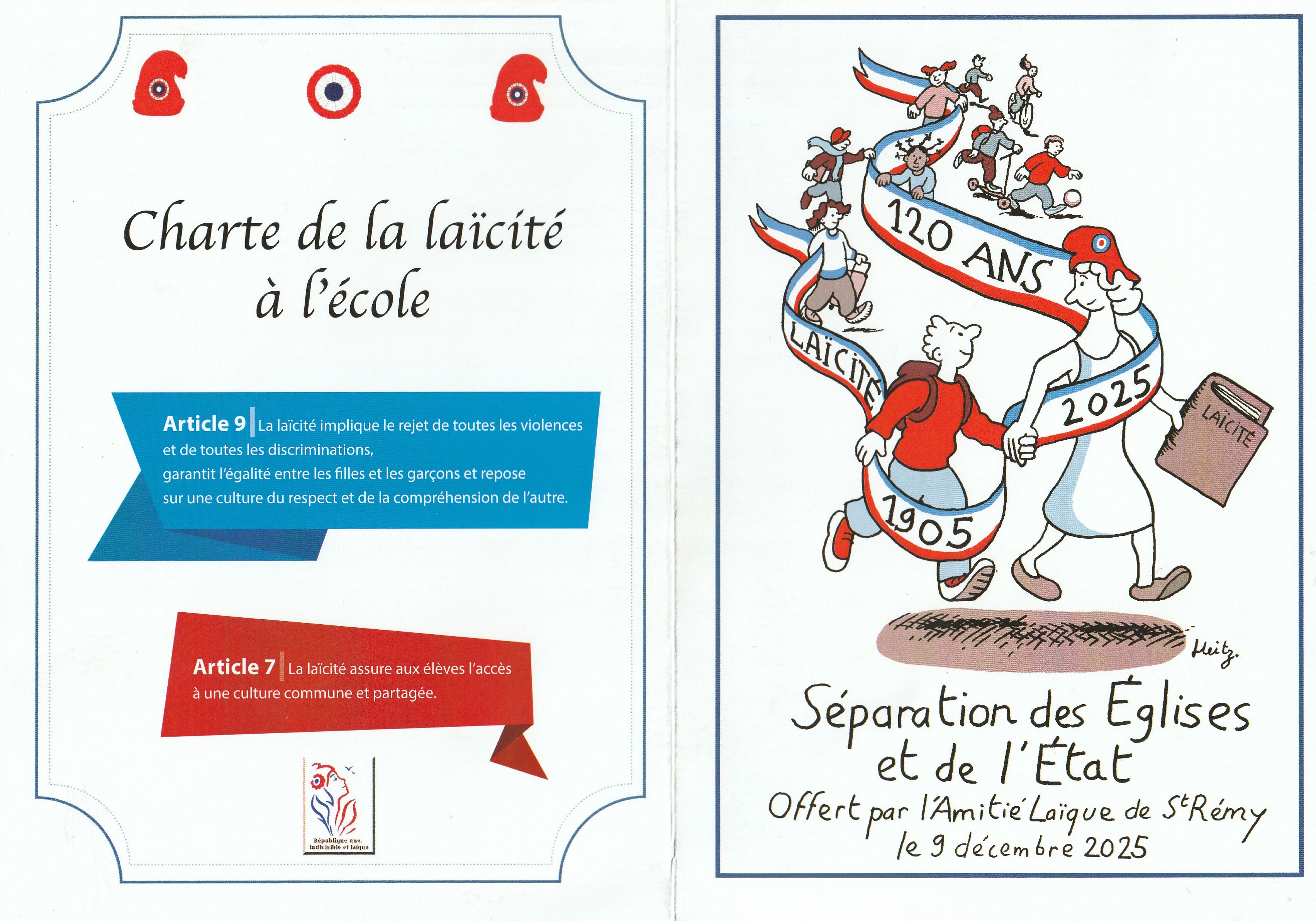 – A l’occasion des 120 ans de la loi de séparation des Eglises et de l’Etat, l’Amitié Laïque de St Rémy a offert ce livret aux enfants des écoles élémentaires.